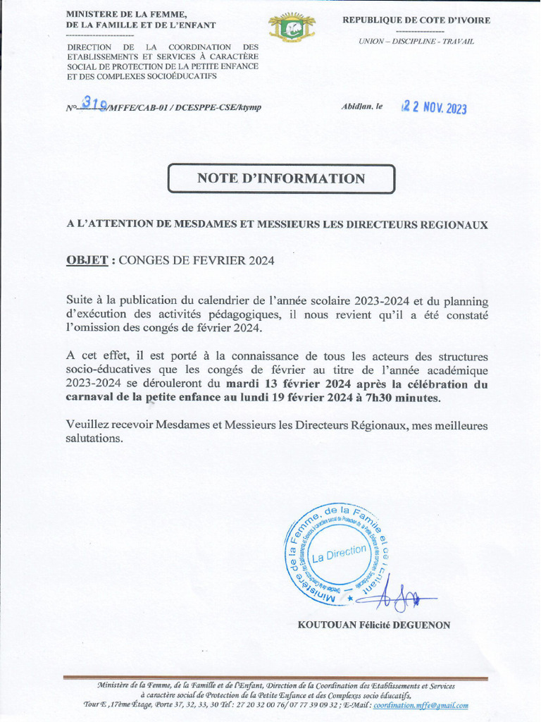 Note d’Info Conges de Fevrier 2024 Scanner | PDF