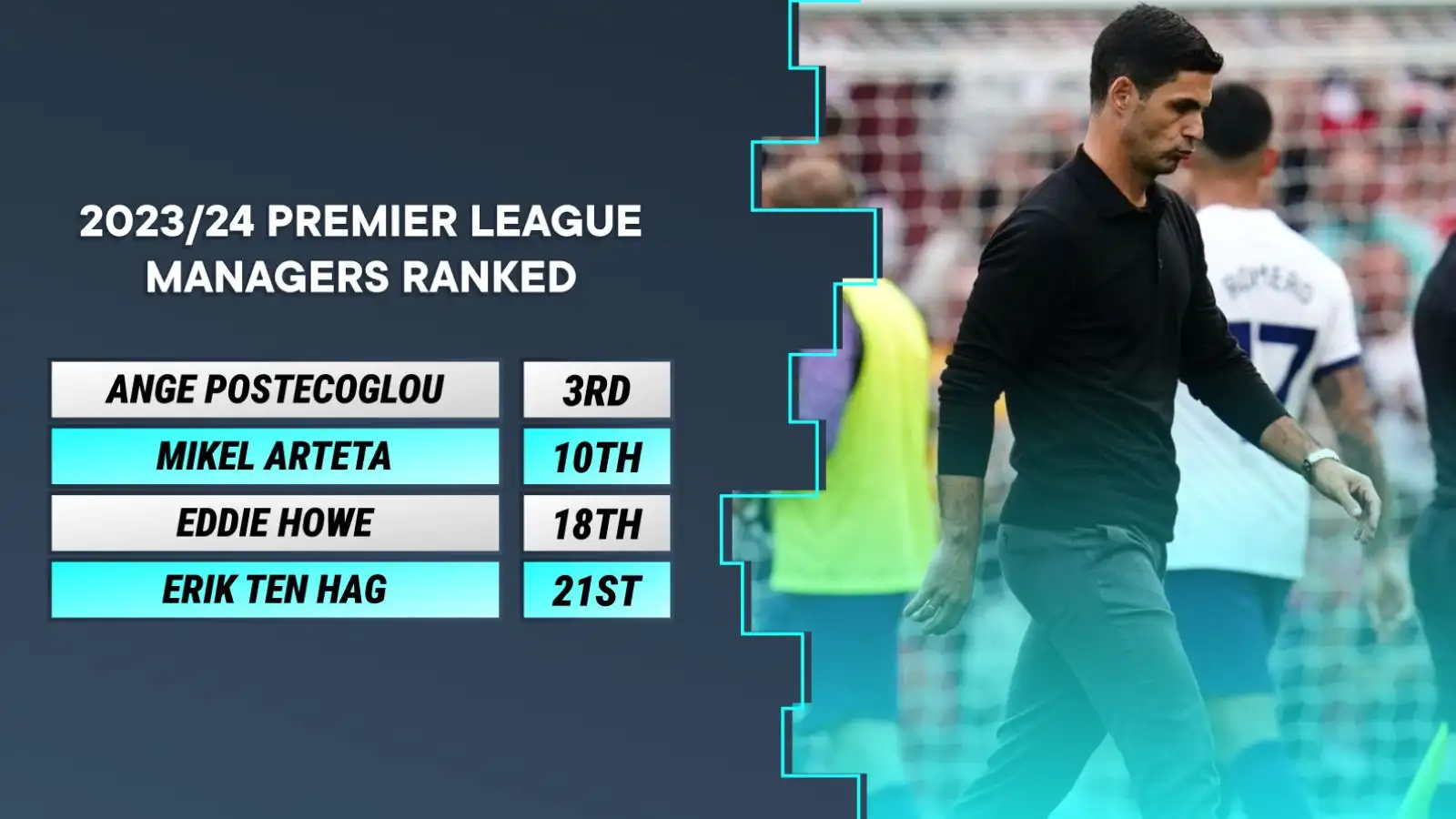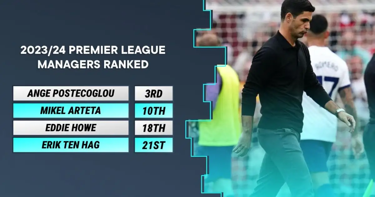 Mikel Arteta 10th, Ten Hag 21st in Premier League manager rankings